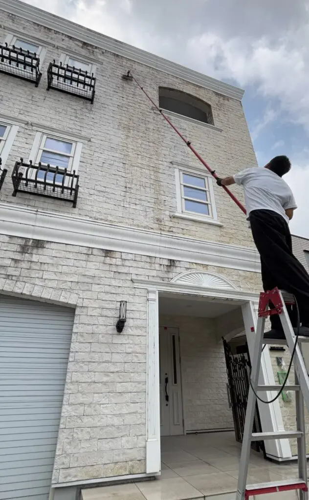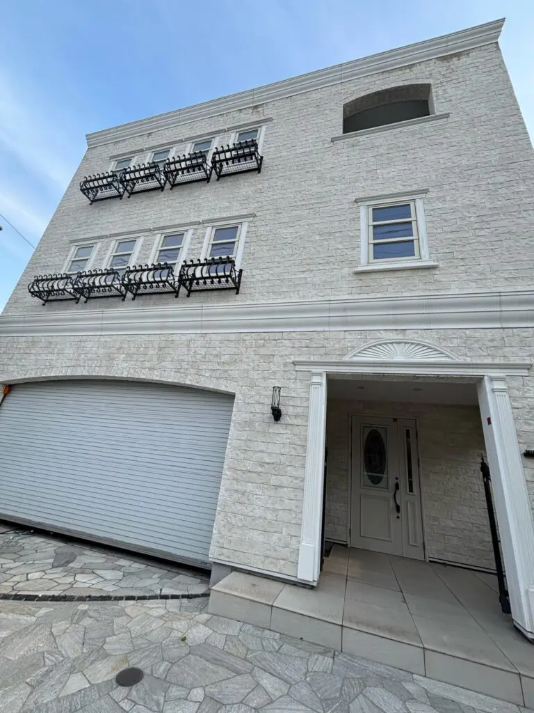 【豊田市】築11年・3階建て住宅の石材タイル外壁を洗浄|高所の汚れもすっきり解決!