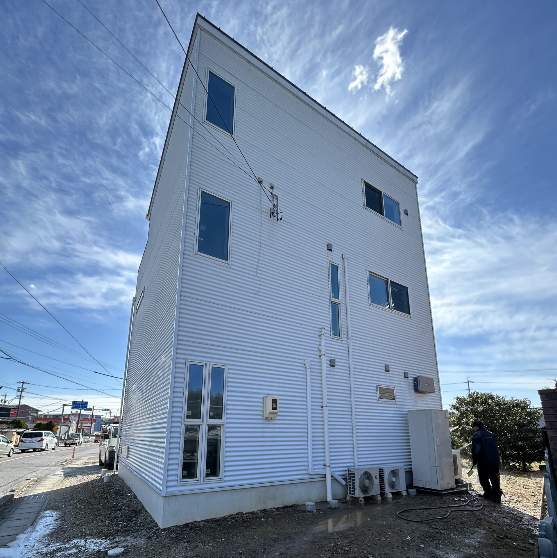 幸田町 築10年 3階建て住宅の外壁一面を洗浄!