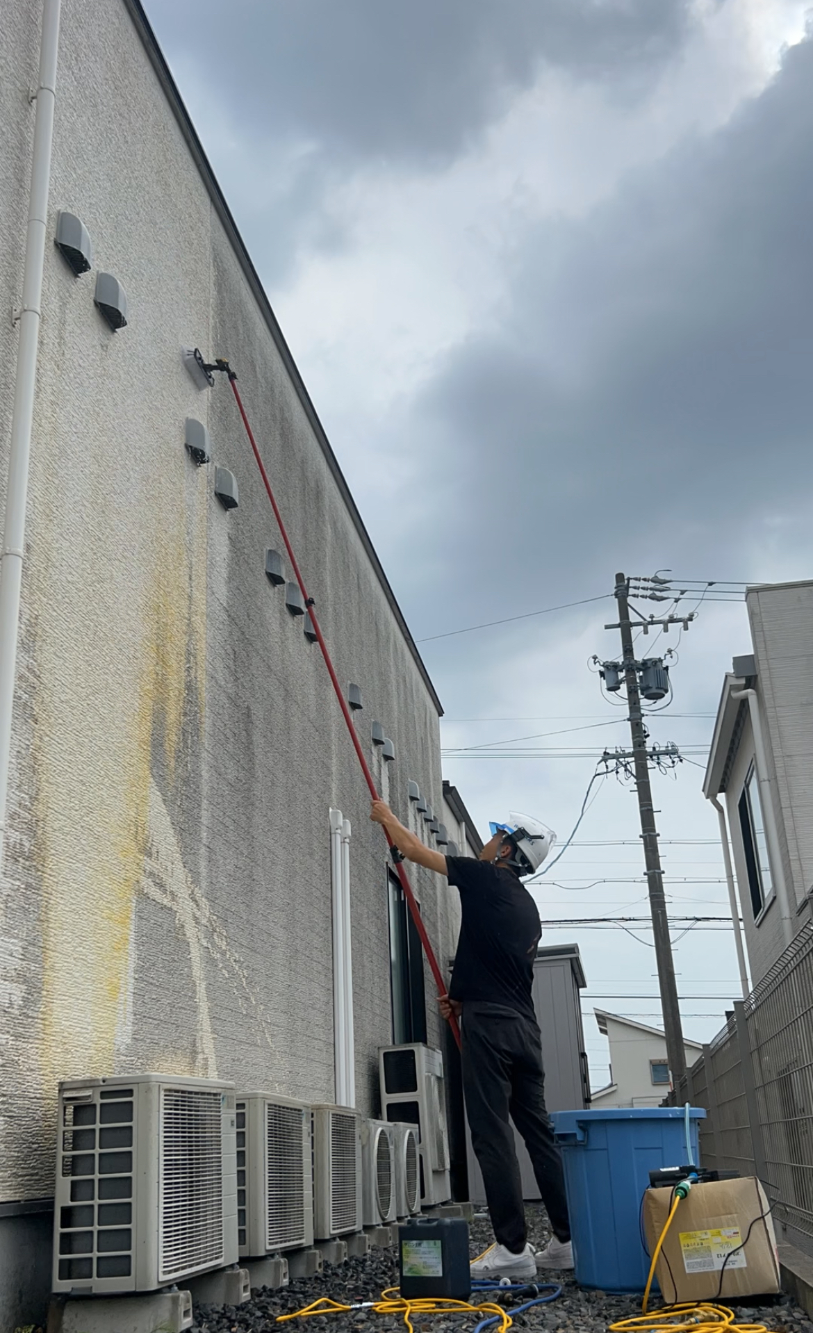 外壁の汚れがかなり気になっており、一度ご自身で洗浄してみたものの